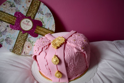 Our blue and pink VIP glitter boxes that were customised for our corporate clients. Goodies in the VIP box were traditional biscuits, Battenberg cake, and pretty petit fours.